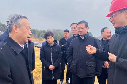 3月03日上午馬鞍山市委書記張岳峰,市委副書記、市政府常務副市長吳勁一行蒞臨安徽交建承建的寧蕪改擴建黃梅山保通線項目現場考察調研...