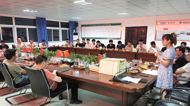 此次會議主要由實習生工作交流分享和員工座談兩個部分組成。會議伊始,由安徽交建分配在項目上的6名實習生,通過對過去一年在項目上學習收獲及工作感悟進行分享,總結(jié)了一年里自己的成長與變化;實習生導師代表楊天潤、張順昌分別就實習生們在工作和生活中互幫互助、相互激勵、共同學習進步的表現(xiàn)和態(tài)度進行一一點評。