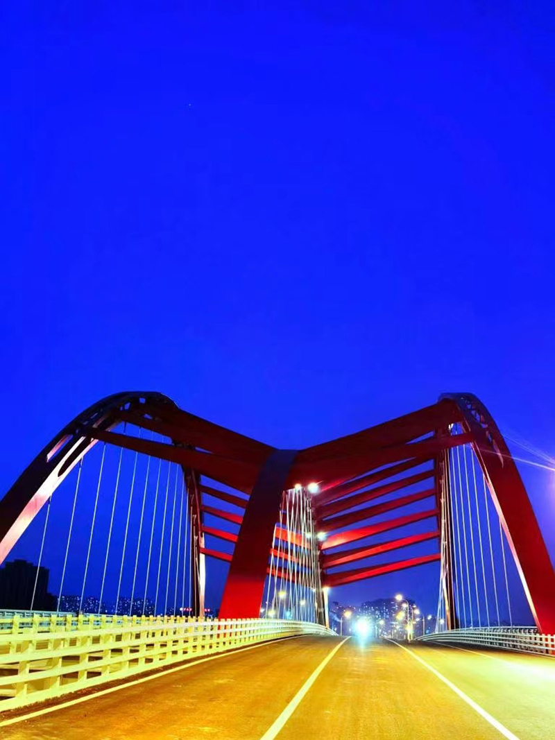主橋技術難度大、橋型及受力結構形式為當下亞洲第二座(第一座在杭州),無論在技術公關還是在組織創新方面都給項目團隊帶來巨大挑戰,主橋的建成通車又一次展現了安徽交建在召之即來,來之能戰的戰斗風格,將在合肥市大建設史上留下濃墨重彩的一筆。該橋兼具城市景觀功能,橋型結構新穎,外觀優美,表面涂裝采用中國紅,鮮艷大氣,連接交通的同時也是合肥市南淝河上一道亮眼的風景線。