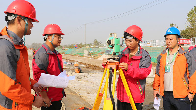 10月29日上午,在安徽交建黃河路項目施工現場,學員們早已摩拳擦掌、躍躍欲試。比賽分為“水準儀+全站儀”綜合團體賽和“全站儀架點”個人賽。按照抽簽分組,依據各組完成時間、操作規范性、測量結果以及第一天的理論成績綜合評判最終結果。找點、跑尺、計算,經過近三個小時的激烈角逐,最終產生綜合團體賽前三名、架點個人賽冠軍,并評選出各小組“最佳學員”。