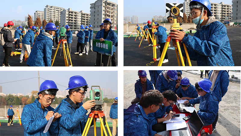 本次大賽分為測量理論知識考核和技能實操競賽兩個部分。在理論考試中,各位學員邊思考邊答題,秩序井然。在“全站儀對點賽”和“水準+全站”實操競賽中,導師們通過抽簽,將身份轉換為裁判,對比賽進行全程跟蹤。隨著總裁判的一聲令下,參賽學員們有條不紊地啟動全站儀、水準儀等測量儀器設備。
