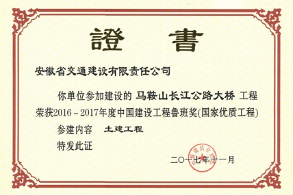 馬鞍山長江公路大橋工程榮獲“2016-2017年度第一批中國建設(shè)工程魯班獎”,“第15屆中國土木工程詹天佑獎”, 該項(xiàng)目由安徽省交通建設(shè)股份有限公司(以下簡稱安...