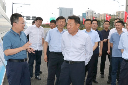 6 月29 日下午,安徽省委常委、合肥市委書記虞愛華一行調研由安徽交建承建的宿松路快速化改造 2 標段項目建設。