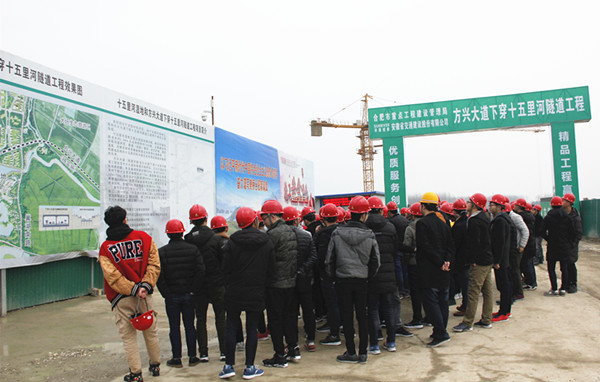 3月8日下午,十五里河濕地工程和方興大道下穿十五里河隧道工程項目(以下簡稱方興大道項目)迎來了安徽理工大學土木工程專業(yè)參觀團,近百名學子在項目駐地及施工現(xiàn)場進行了系統(tǒng)的學習、交流。