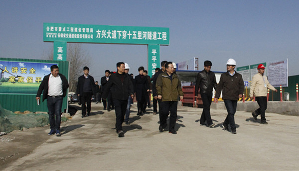 11月25日上午,安徽省委常委、合肥市委書(shū)記宋國(guó)權(quán),市長(zhǎng)凌云深入建設(shè)一線,實(shí)地調(diào)研了安徽交建承建的十五里河濕地工程和方興大道下穿十五里河隧道工程項(xiàng)目.宋書(shū)記、凌市長(zhǎng)一行到達(dá)方興大道項(xiàng)目駐地后,首先詳細(xì)了解了項(xiàng)目承建單位—安徽省交通建設(shè)股份有限公司的詳細(xì)情況;聽(tīng)取了該項(xiàng)目建設(shè)的總體規(guī)劃、實(shí)施進(jìn)展、生態(tài)文明建設(shè)等重點(diǎn)工作的匯報(bào)。宋書(shū)記高興地指出,安徽交建作為合肥市大建設(shè)的先頭軍、排頭兵要有使命意識(shí)、責(zé)任擔(dān)當(dāng),工程建設(shè)過(guò)程中要注重生態(tài)環(huán)境保護(hù),牢固樹(shù)立和踐行生態(tài)文明觀、科學(xué)發(fā)展觀。