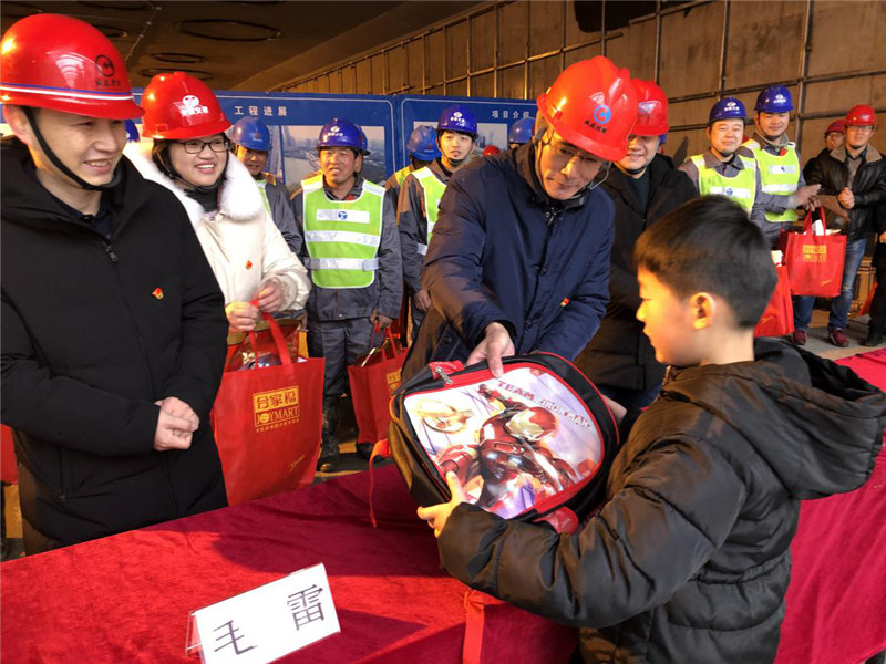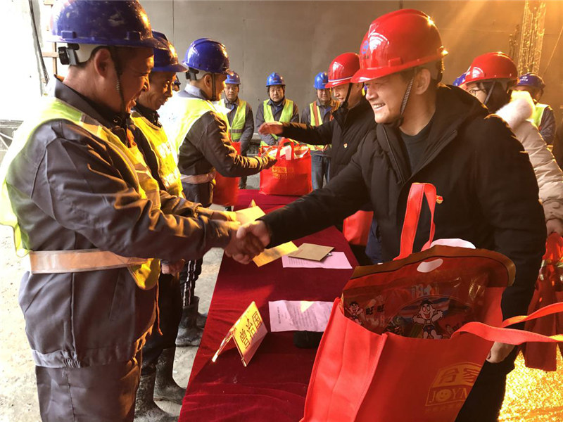 活動中,志愿者們忙碌的身影,匯成一道道亮麗的風景線。他們一邊向返鄉農民工宣傳網上購票知識,一邊發放勞動法、公司法以及建設工程施工合同常見法律問題等普法宣傳材料,并提供現場志愿咨詢答疑服務,一同打掃工舍、貼春聯,共迎新年……志愿者們熱情細致的服務得到了農民工兄弟和周邊群眾的一致好評。此外,在活動現場為20多名生活困難農民工提供返鄉購票愛心基金,并送上豐厚多樣的新春大禮包,為春節期間“匠人”順利返鄉,貢獻了力量,傳遞了溫暖。同時,還為1名家庭特別困難的民工子女送去新年禮物,讓忙碌了一年的城市建設者深刻感受到城投公司對其留守子女、家人的真切關懷,以及被尊重、被認可的職業崇高感。