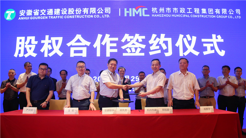 6月29日下午,安徽省交通建設(shè)股份有限公司(以下簡(jiǎn)稱交建股份)與杭州市市政工程集團(tuán)有限公司(以下簡(jiǎn)稱杭州市政)簽署購(gòu)買資產(chǎn)意向協(xié)議,交建股份擬購(gòu)買杭州市政70.83%的股權(quán)。此項(xiàng)收購(gòu)?fù)瓿珊螅唤ü煞輰碛泄贰⑹姓p特級(jí)資質(zhì),圍繞拓展全國(guó)業(yè)務(wù)戰(zhàn)略,進(jìn)一步拓展長(zhǎng)三角市場(chǎng)。交建股份實(shí)控人、祥源控股集團(tuán)有限責(zé)任公司董事長(zhǎng)俞發(fā)祥、杭州市城鄉(xiāng)建委副主任楊鐵定、杭州市城投集團(tuán)副總經(jīng)理余敏紅出席簽約儀式。
