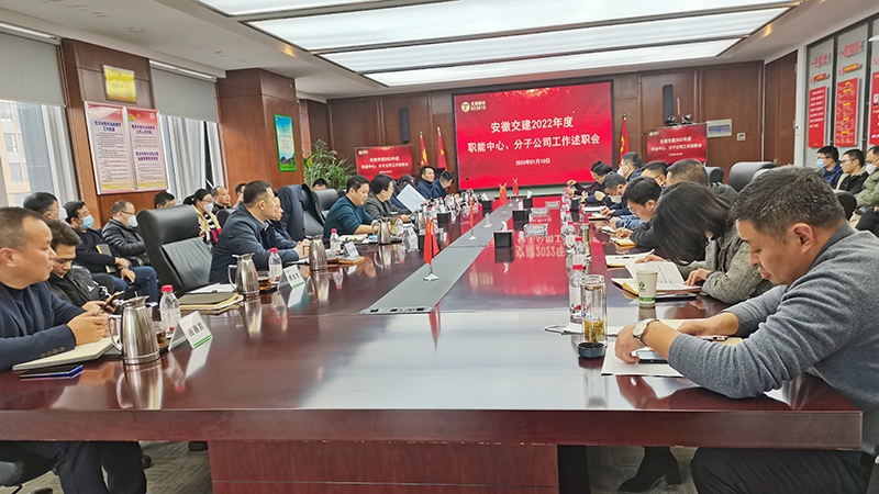 1月10日下午,安徽省交通建設股份有限公司2022年度職能中心和分子公司工作述職大會在總部20樓會議室召開,公司經營班子、高管及各職能中心、分子公司負責人等參加了會議。