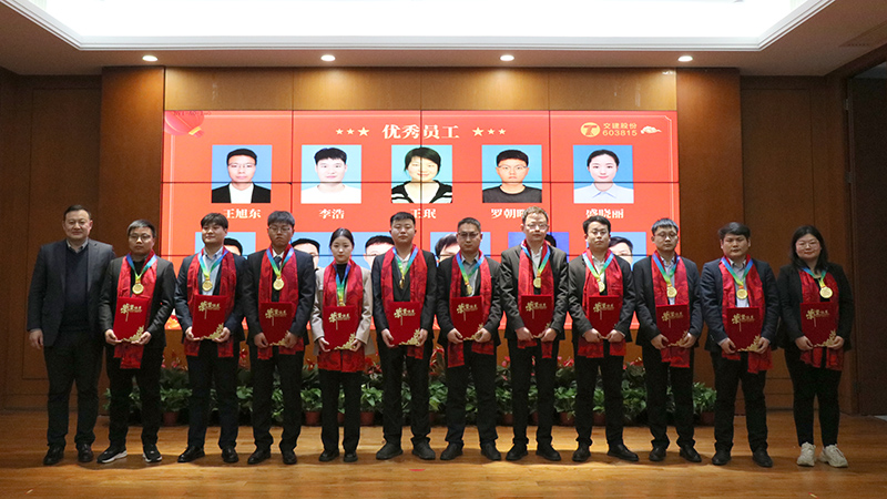 2023年公司全員凝心聚力,臨難不卻,取得了較為不易的成績,也涌現出了一批敬業篤行、奮輯勇進的先進榜樣。公司董事會秘書曹振明宣讀了2023年度公司優秀表彰文件,隨后舉行了隆重的頒獎儀式,為受表彰的個人和集體頒發獎杯、證書及獎金。大會號召公司全員要以先進為榜樣,心系發展,愛崗敬業,同心共贏,再創佳績!