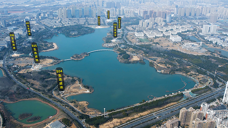 王建溝上游生態修復工程現場生態濾池布局圖(翡翠湖風景區內)