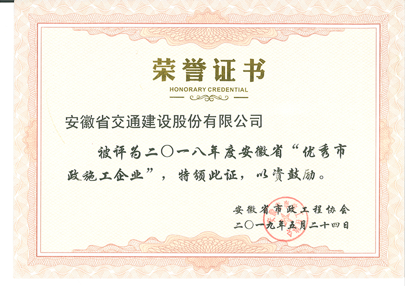 合肥市市政工程行業優秀企業稱號